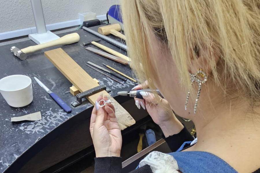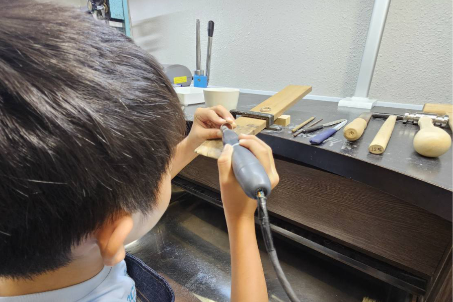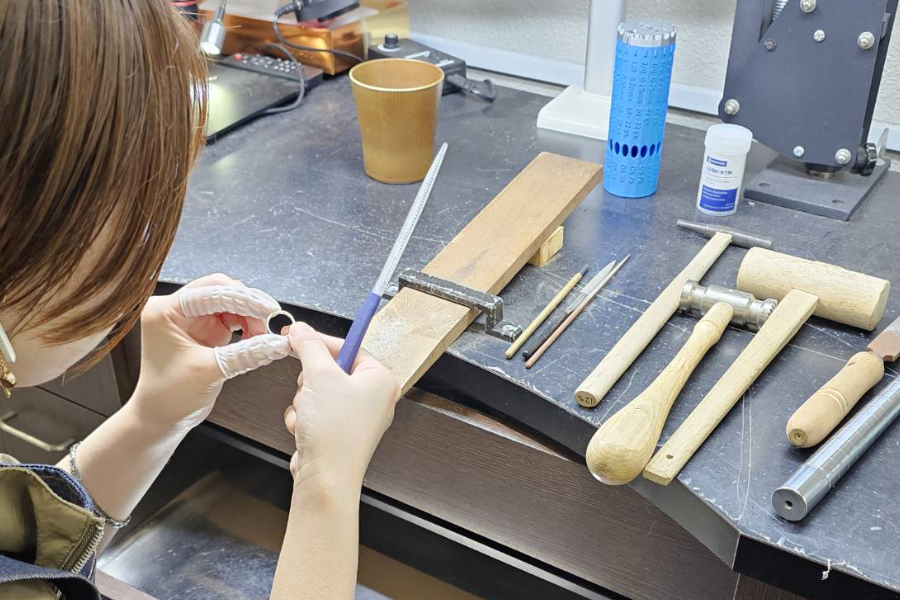 ハンマーやテクスチャーハンマー、指輪彫刻機などプロの使う様々な道具で製作していただきます。