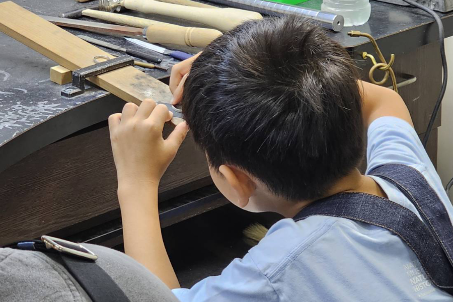 金床やハンマー等使い本格的な彫金体験が出来ます。