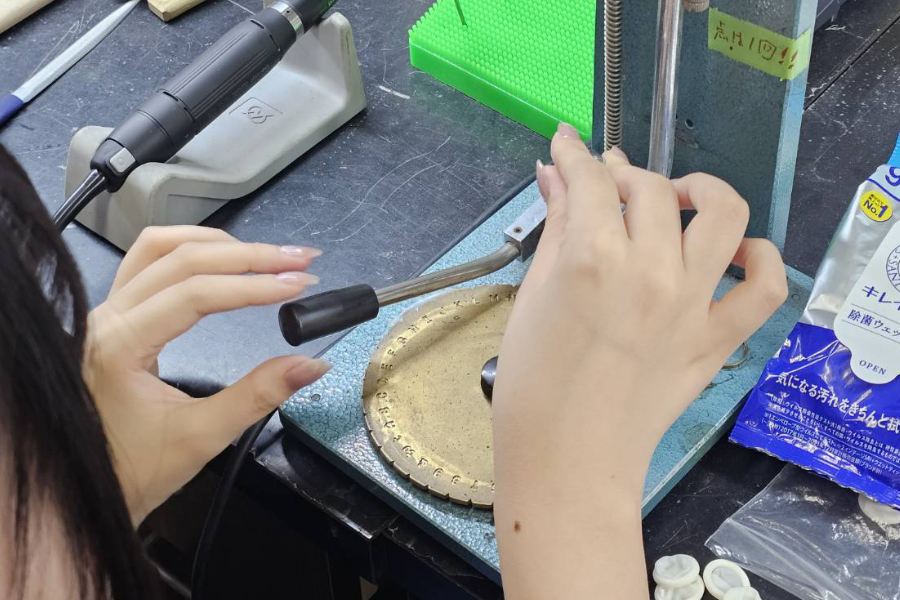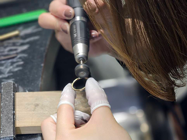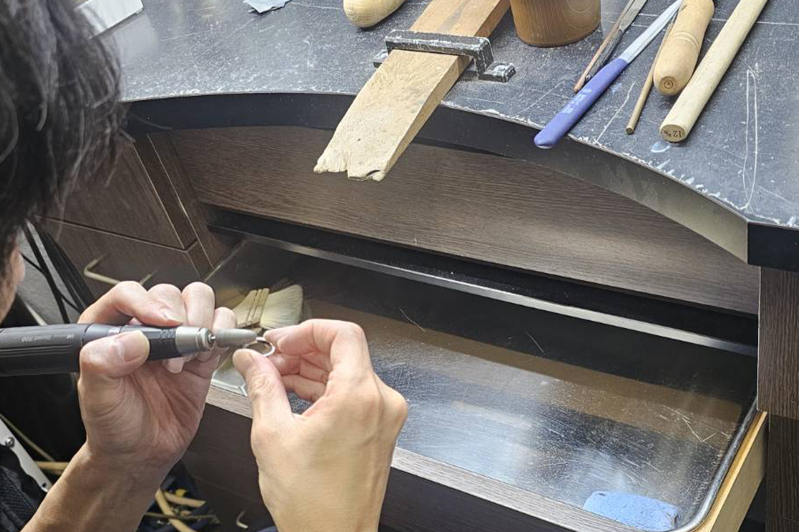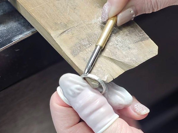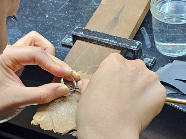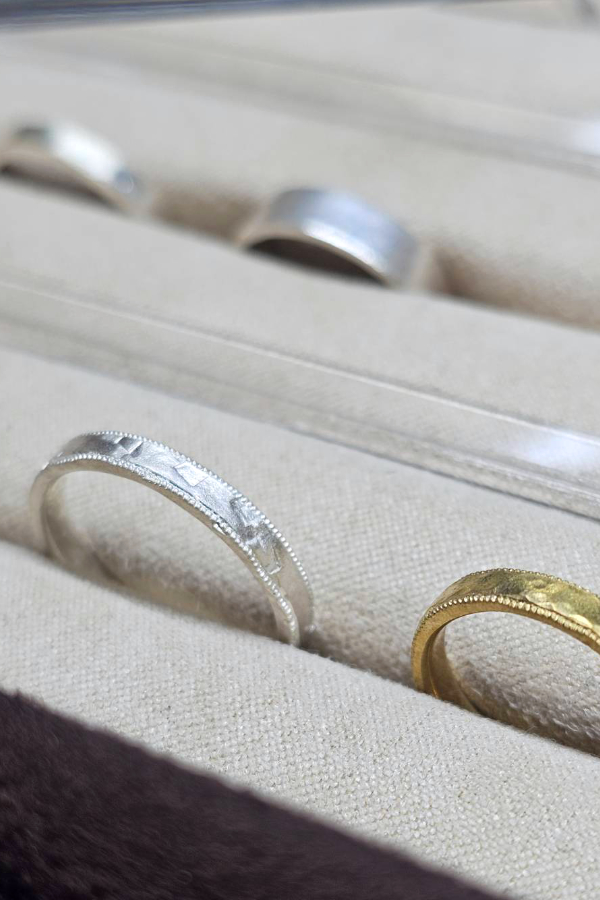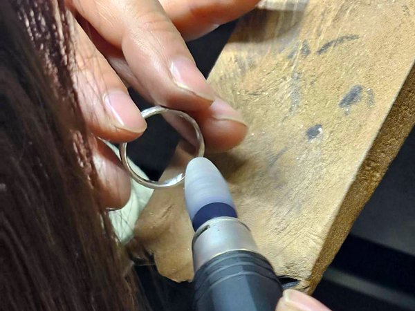 製作の最終段階で、磨きや刻印等をおこなっていただきます。(※刻印入れは、幅3mm以上のリングからになります。)