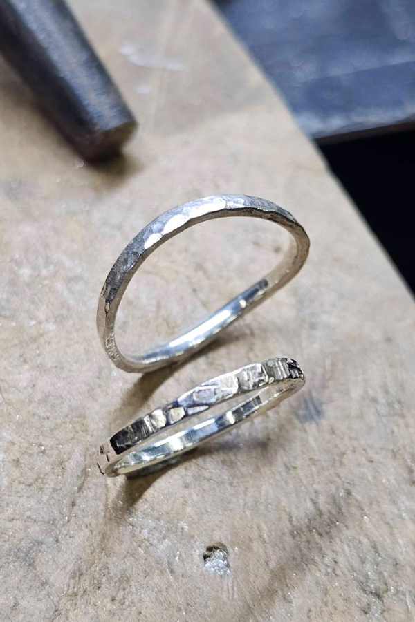 文字入れ、研磨、テクスチャーハンマーで初めての方でも存分に手作り体験が楽しめるリング作り。記念日にいかがですか。